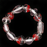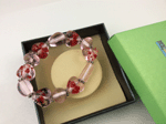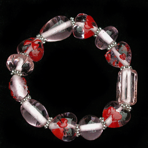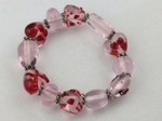 Clear Pink Valentine Lampwork Glass Beaded Stretch Bracelet - Heart