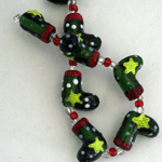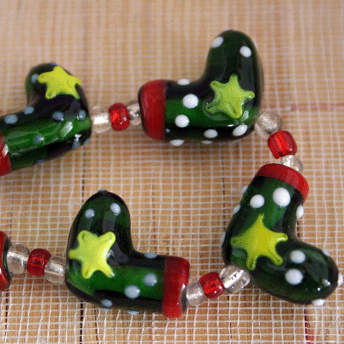 Christmas Theme Green Stocking Lampwork Glass Bead