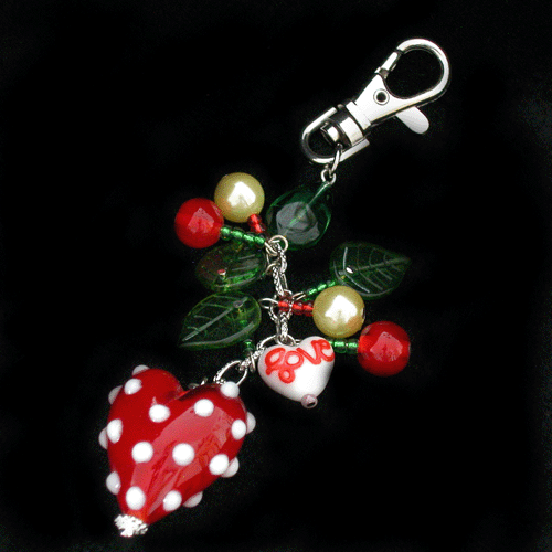 Red Heart(with white dots) Glass Beaded Key Chain/Bag Charm