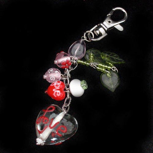 Clear Heart(with "Love")Glass Beaded Key Chain/Bag Charm